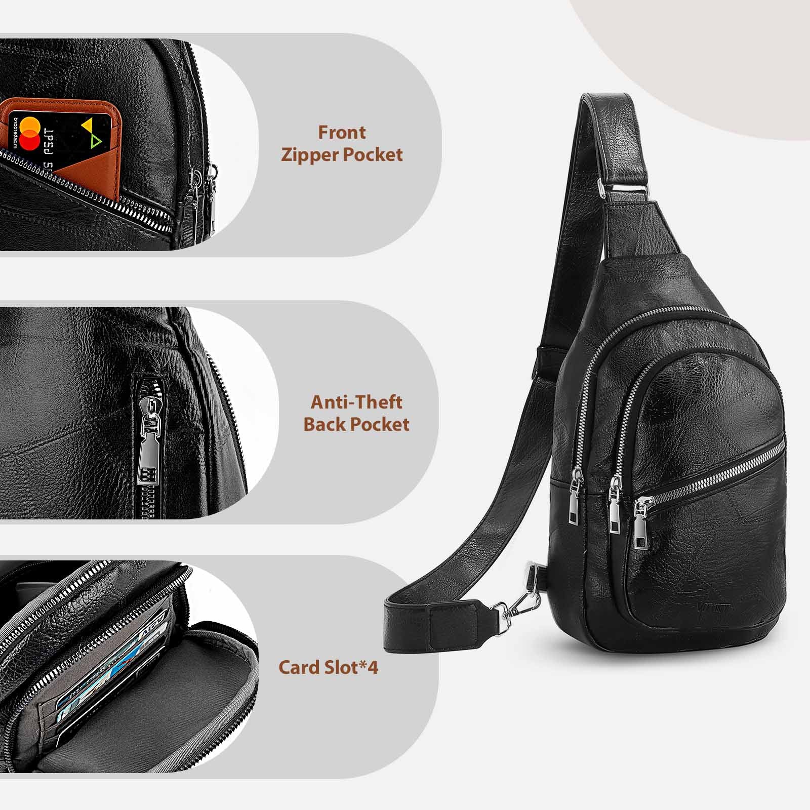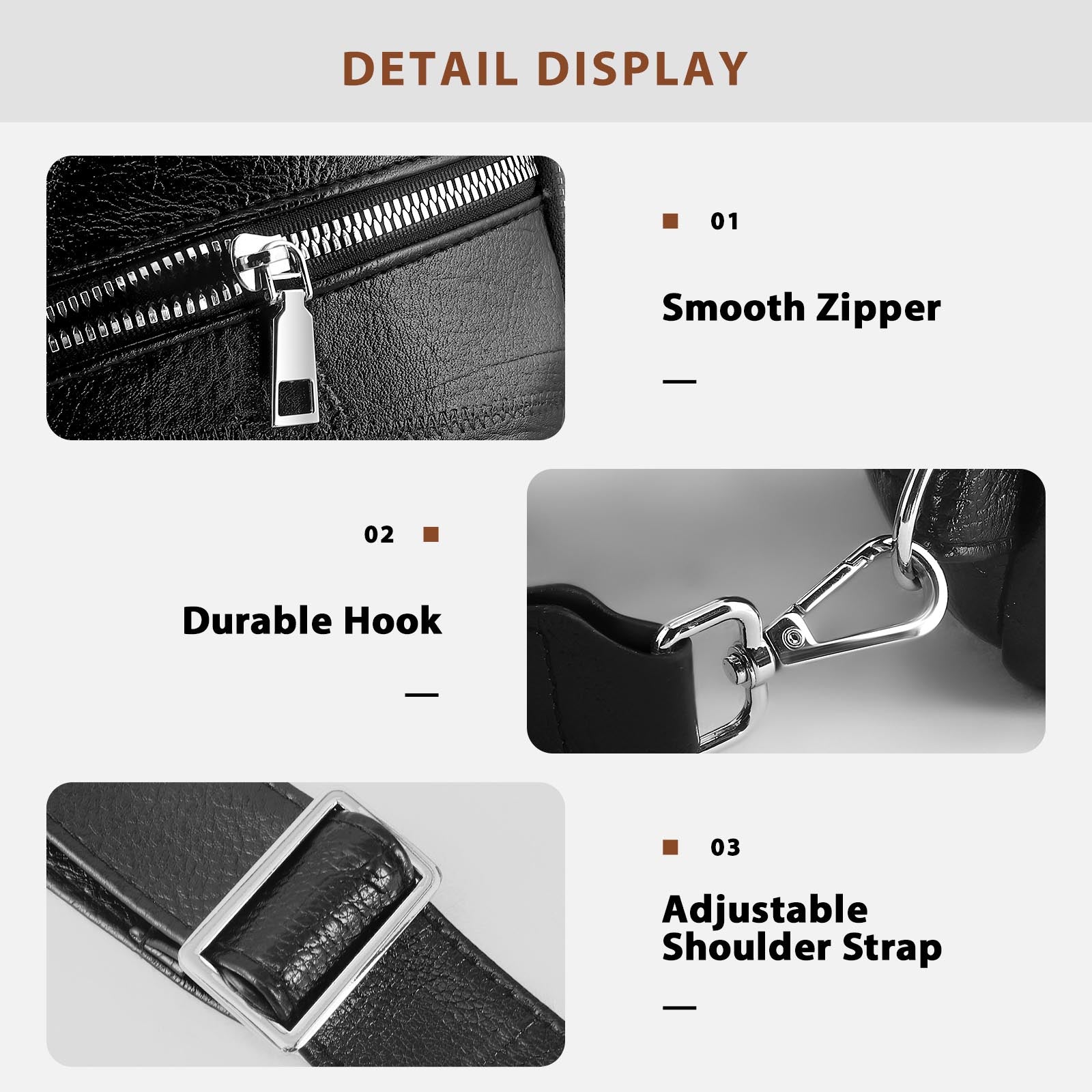 【WATERPROOF & DURABLE MATERIAL】The women's bag sling bag is made of soft PU leather with unique texture, which is comfortable and waterproof. And the handmade leather is durable and easy to clean. Equipped with durable metal fasteners and smooth zippers for long-lasting.