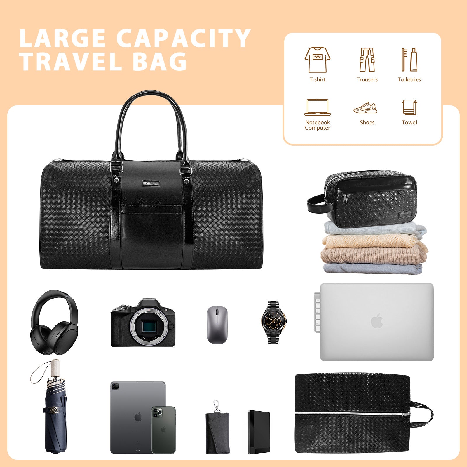 Oversized Business Bag: Suitable for two-three days weekender or business trip. Unisex classic style perfect for men and women