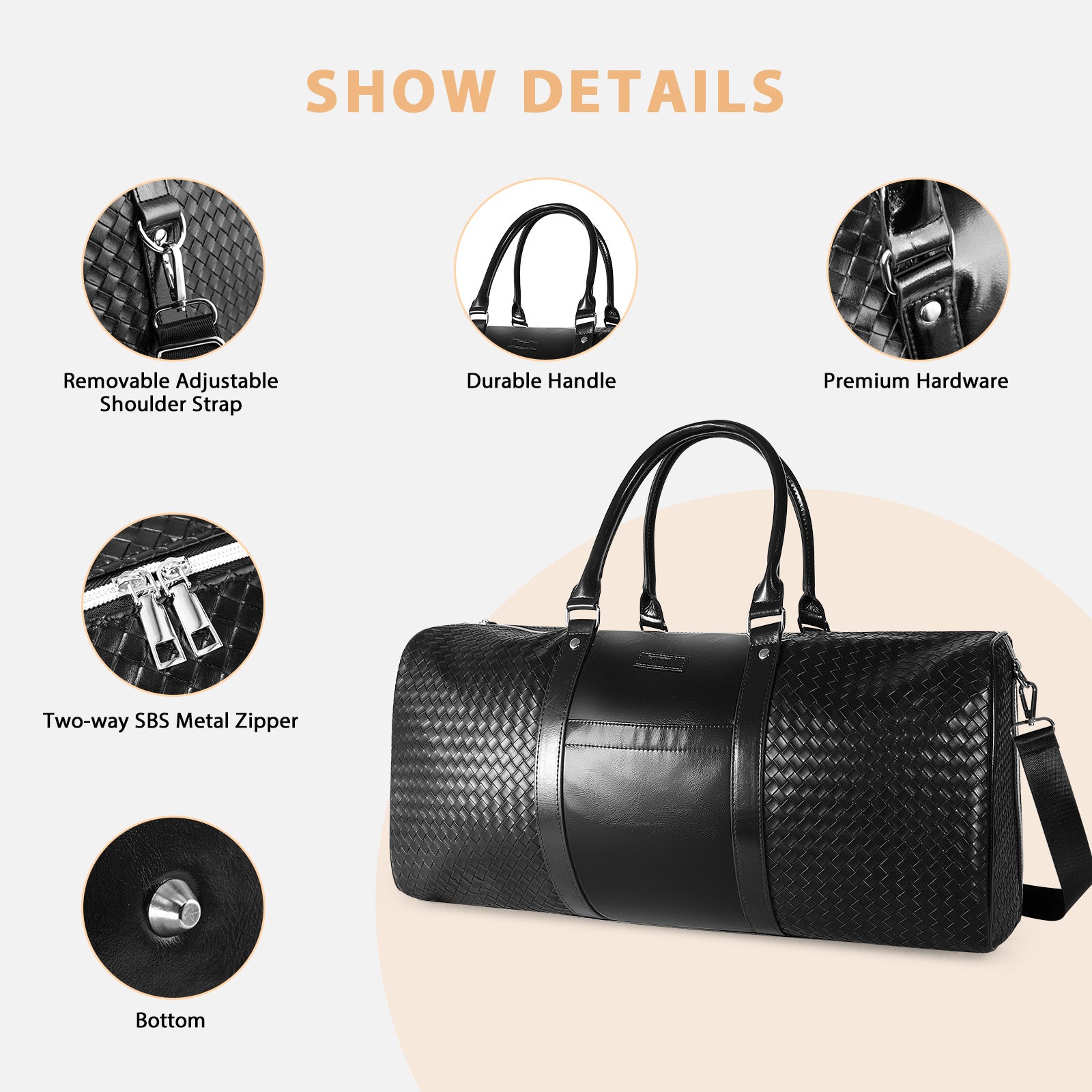 Super Wide-angle Zipper: The shoulder weekend duffle bag is designed with extra long and extra wide angle zipper, which is easy to place and take out all kinds of items, and it is also made of high-quality metal zipper, which is smooth and silky, adding more happiness to your travels