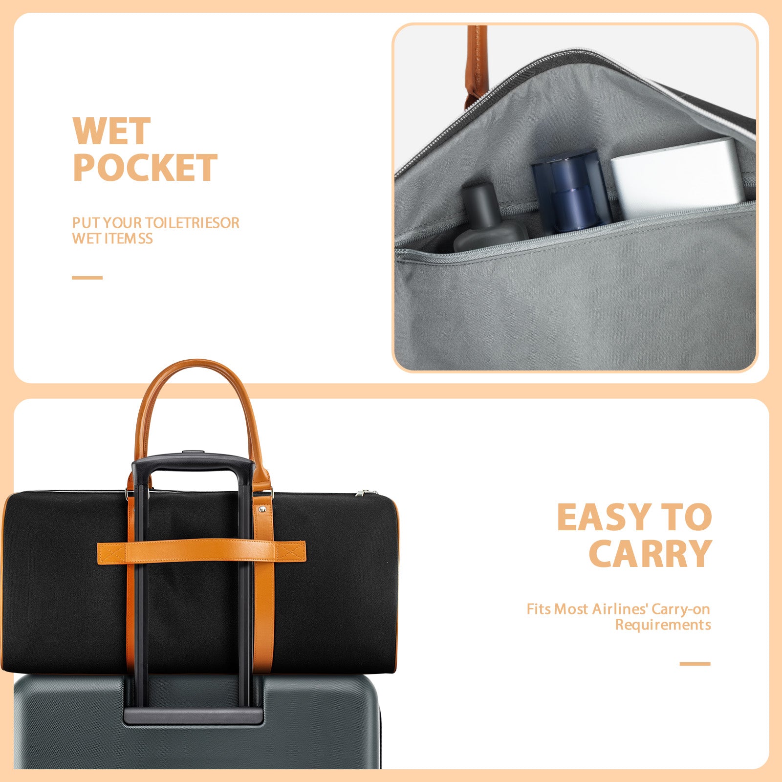 Better Practicality: The leather travel duffel bag has cushioned adjustable shoulder straps. There is a zipper pocket on the front and a luggage bar slot on the back, which makes it easy to attach the travel bag to the luggage bar with more ease